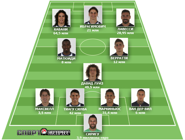 Но места в стартовом составе наставник парижан Лоран Блан доверил только проверенным футболистам, успевшим сделать себе имя в других европейских клуба. Эта версия состава (без учета пары выбовших футболистов – Тиагу Мотты и Лукаса Моуры) обошлась катарским владельцам "ПСЖ" в 270,75 миллиона евро: