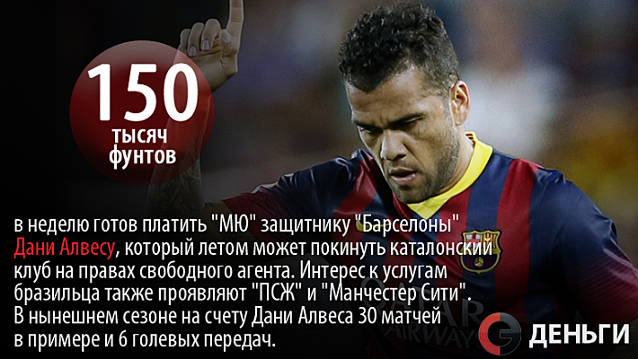 150 тысяч фунтов в неделю готов платить "МЮ" защитнику "Барселоны" Дани Алвесу, который летом может покинуть каталонский клуб на правах свободного агента.