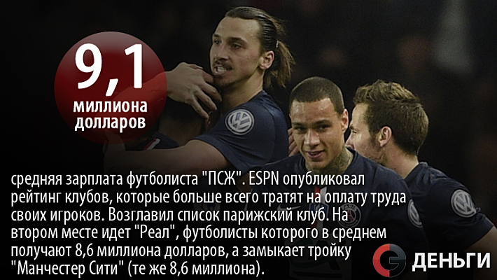 9,1 миллиона долларов - средняя зарплата футболиста "ПСЖ". ESPN опубликовал рейтинг клубов, которые больше всего тратят на оплату труда своих игроков.