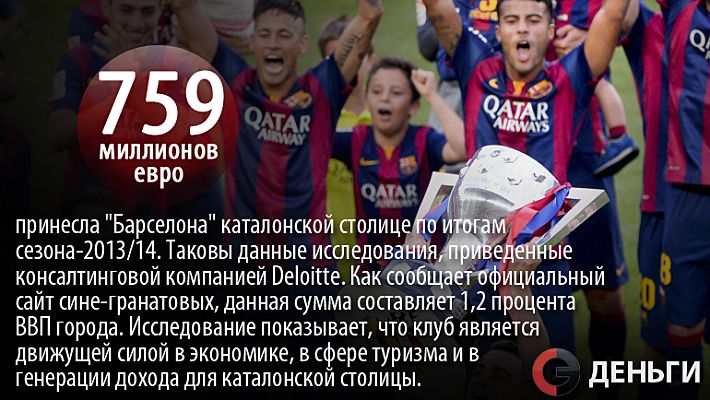 759 миллионов евро принесла "Барселона" каталонской столице по итогам сезона-2013/14.