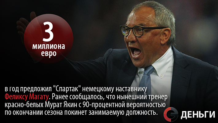 3 миллиона евро в год предложил "Спартак" немецкому наставнику Феликсу Магату.
