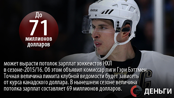 До 71 миллионов долларов может вырасти потолок зарплат хоккеистов НХЛ в сезоне-2015/16.