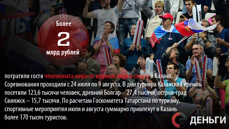 Более 2 миллиардов рублей потратили гости чемпионата мира по водным видам спорта в Казани.