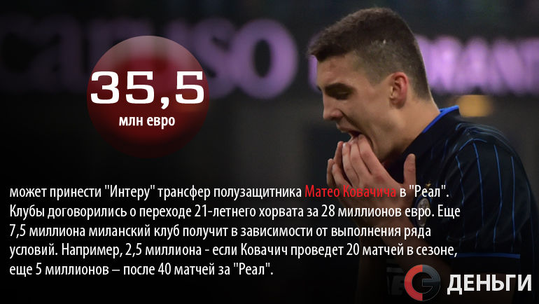 35,5 миллиона евро может принести "Интеру" трансфер полузащитника Матео Ковачича в "Реал".