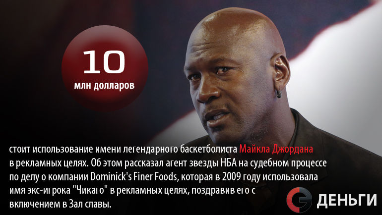 10 миллионов долларов стоит использование имени легендарного баскетболиста Майкла Джордана в рекламных целях.