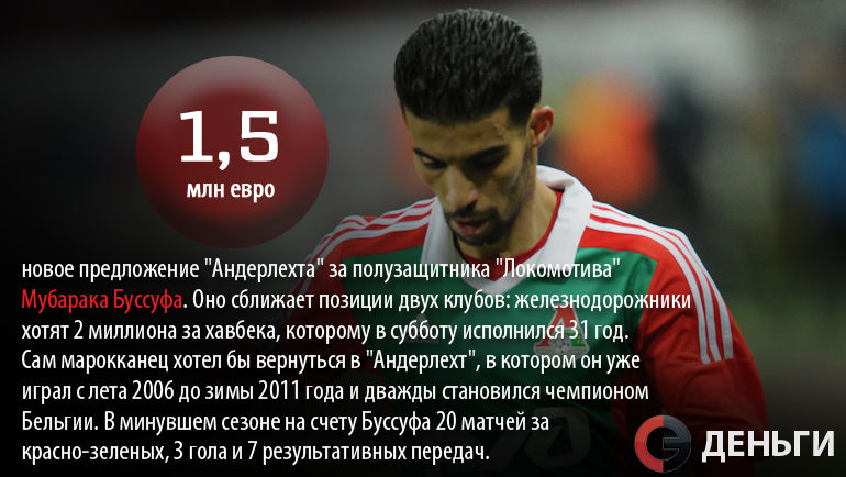 1,5 миллиона евро новое предложение "Андерлехта" за полузащитника "Локомотива" Мубарака Буссуфа.
