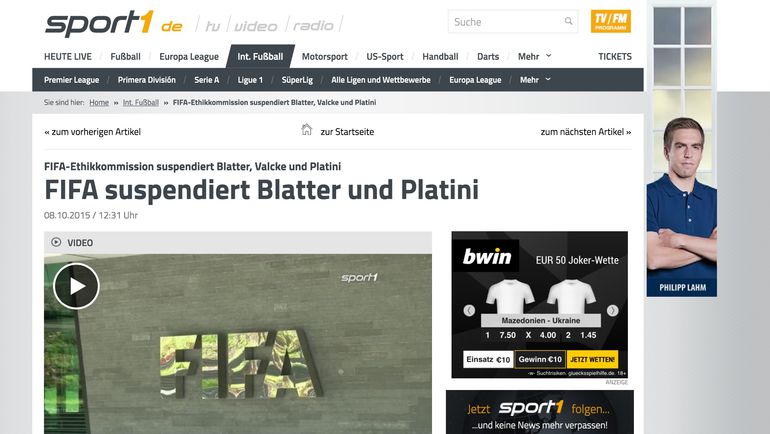SPORT1 (Германия): "Блаттер будет в отпуске"