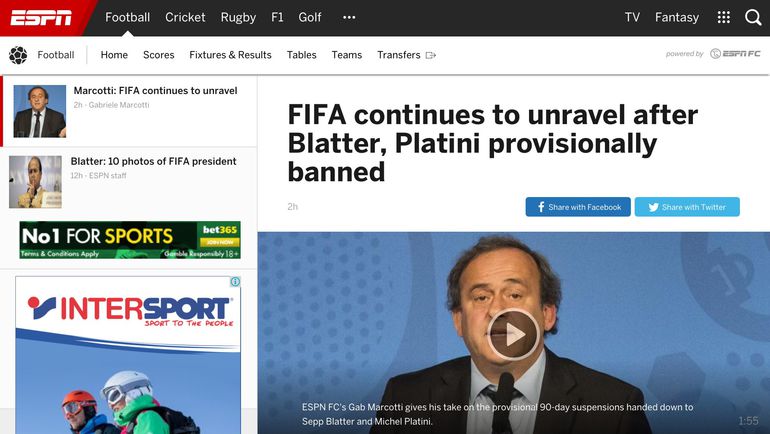 Остается неясной ситуация с Платини. До 26 февраля его дисквалификация истечет, но его кандидатура на пост главы ФИФА еще не одобрена. Очевидно, что мировой футбол ждет смутное время.