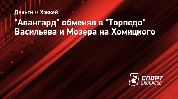 "Авангард" обменял в "Торпедо" защитника Валерия Васильева и нападающего Евгения Мозера на защитника Вадима Хомицкого. Кроме того, "Авангард" и нападающий Николай Лемтюгов прекратили сотрудничество по обоюдному соглашению сторон.