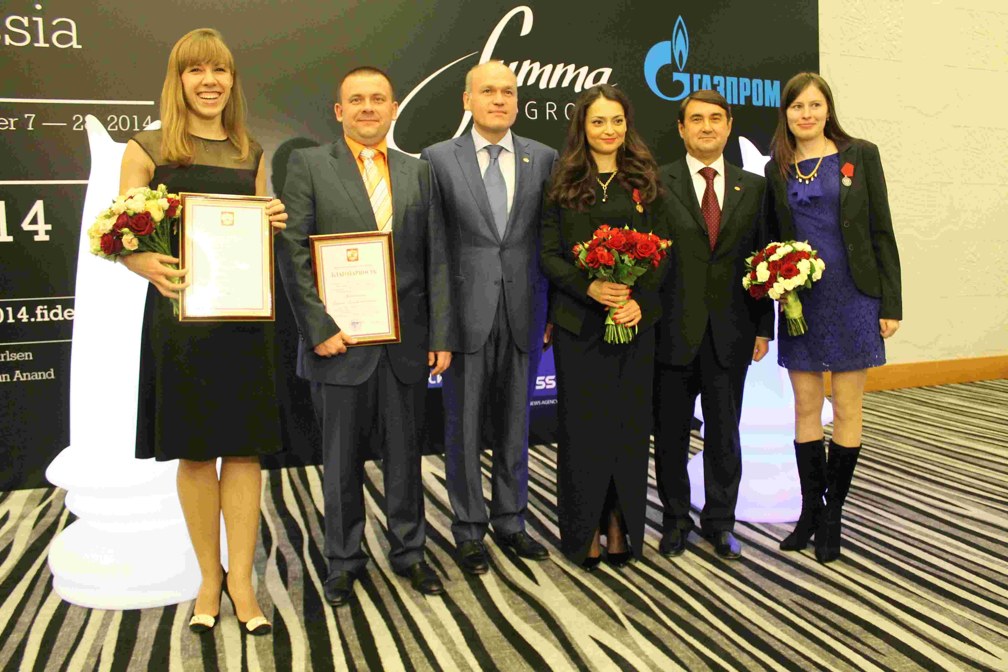 По поручению Президента Российской Федерации Владимира Путина награды победительницам вручил помощник Президента Игорь Левитин. Церемония награждения состоялась во время торжественного открытия Матча за звание чемпиона мира ФИДЕ по шахматам, который стартовал сегодня в Сочи.