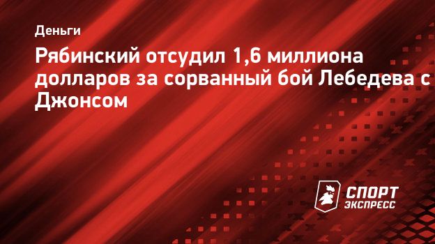Рябинский отсудил 1,6 миллиона долларов за сорванный бой Лебедева с Джонсом