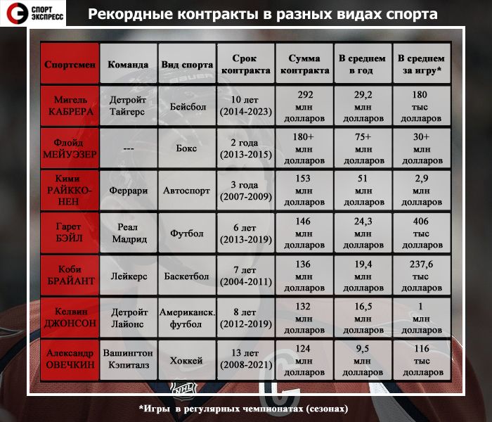 Рекордные контракты звезд мирового спорта: от Брайанта до Овечкина