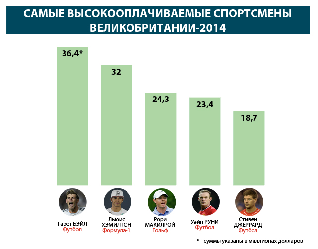 Журнал Forbes посчитал заработки самых состоятельных спортсменов Туманного Альбиона.