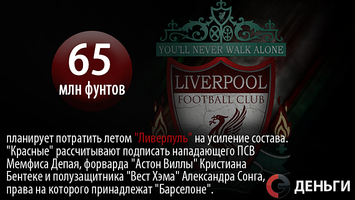 65 миллионов фунтов планирует потратить летом "Ливерпуль" на усиление состава.