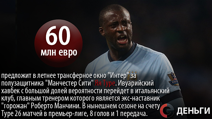 60 миллионов евро предложит в летнее трансферное окно "Интер" за полузащитника "Манчестер Сити" Яя Туре.