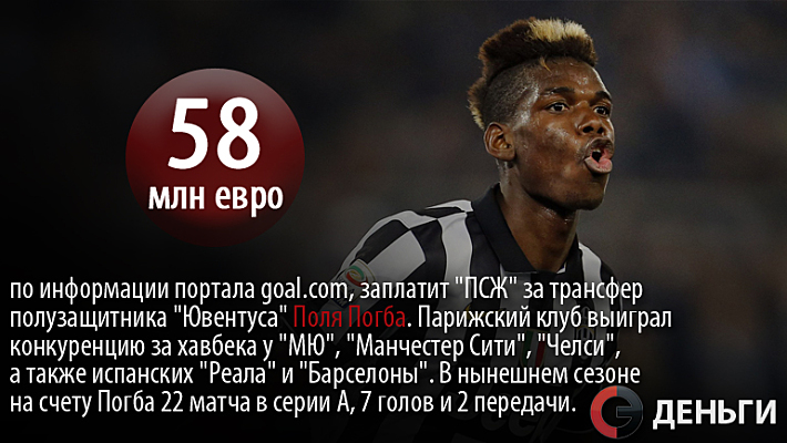 58 миллионов евро, по информации портала goal.com, заплатит "ПСЖ" за трансфер полузащитника "Ювентуса" Поля Погба.