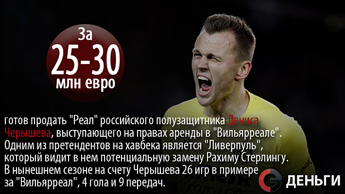 За 25-30 миллионов евро готов продать "Реал" российского полузащитника Дениса Черышева, выступающего на правах аренды в "Вильярреале".