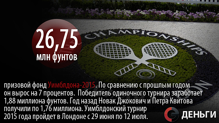 26,75 миллиона фунтов - призовой фонд Уимблдона-2015.