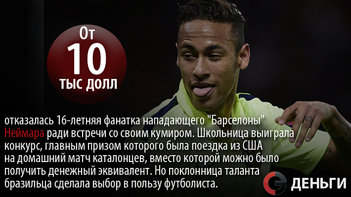 От 10 тысяч долларов отказалась 16-летняя фанатка нападающего "Барселоны" Неймара ради встречи со своим кумиром.