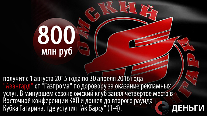 800 миллионов рублей получит с 1 августа 2015 года по 30 апреля 2016 года "Авангард" от "Газпрома".
