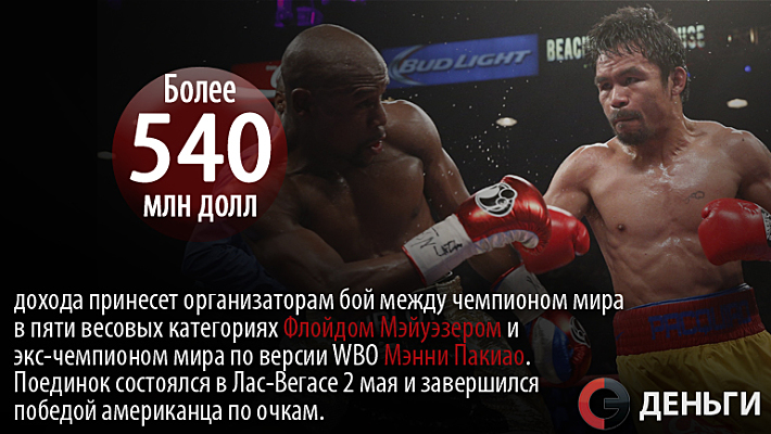 Более 540 миллионов долларов принесет организаторам бой между Флойдом Мэйуэзером и Мэнни Пакиао.