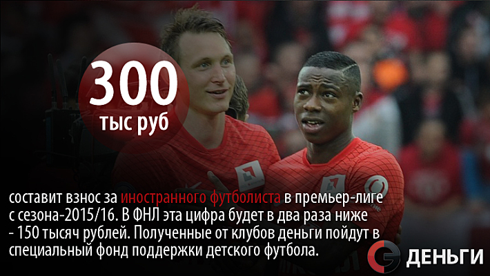300 тысяч рублей составит взнос за иностранного футболиста в премьер-лиге с сезона-2015/16.