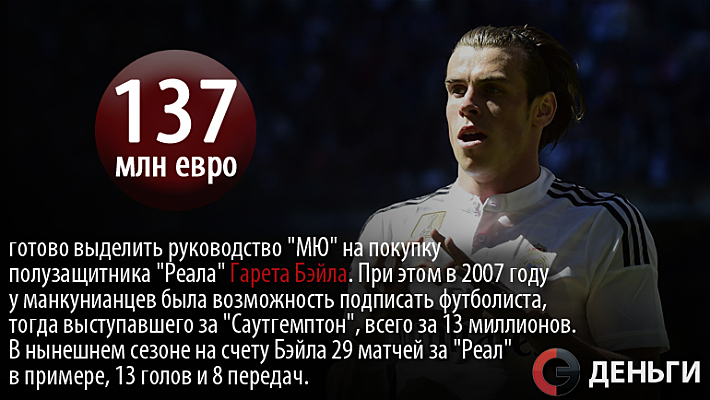 137 миллионов евро готово выделить руководство "МЮ" на покупку полузащитника "Реала" Гарета Бэйла.