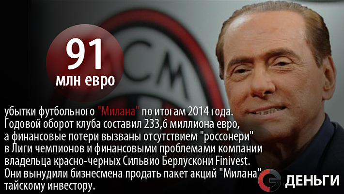 91 миллион евро - убытки футбольного "Милана" по итогам 2014 года.