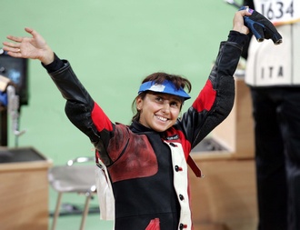 - На пневматике 400 очков попадала дважды, но это было лишь повторением рекорда. На играх в Афинах сделала 399 - олимпийский рекорд. Но, выходя на рекорд, никогда не думала о нем, только о правильности выстрела. |