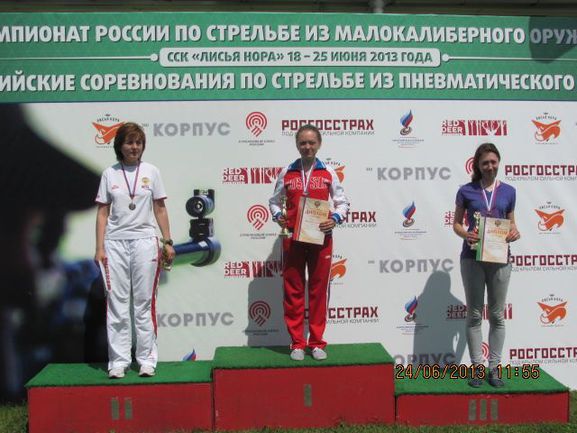 Чемпионат России по стрельбе из малокалиберного оружия. Мужчины. Стандартный пистолет, 25 м. 1. Леонид Екимов (Архангельская область, тренер - А.П. Поздеев) – 575 очков. 2. Денис Кулаков (Челябинская область, личный тренер – В.В. Рыбанин) – 571 очко. 3. Сергей Пыжьянов (Брянская область, личный тренер – Е.В. Савкина) – 567 очков. Женщины. Малокалиберная винтовка, 50 м. 1. Полина Хорошева (Московская область, личный тренер – А.Д. Полосухин) – 594 очка. 2. Татьяна Юшкова (Москва, личные тренеры – И.В. Раенко, И.А. Павлова) – 593 очка. 3. Анастасия Метова (Московская область, личные тренеры – А.Е. Ананьев, Д. Подшибякин) – 592 очка.