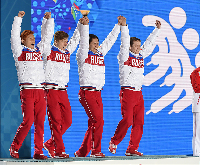 22 февраля. Сочи. Виктор АН и золотая эстафетная команда. Фото – Александр ФЕДОРОВ, "СЭ"