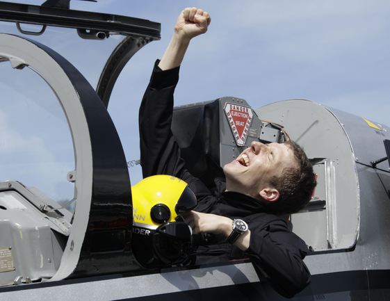 Четырехкратный олимпийский чемпион по прыжкам с трамплина Симон Амманн впервые сел в кабину реактивного самолета во время показательных полетов на L-39 C Albatros в Буоксе. Именитый швейцарец провел в небе всю демонстрационную программу команды из семи самолетов, предназначенных для военной подготовки летчиков. Фото - REUTERS