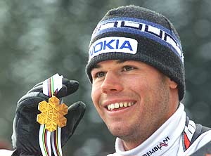 Андерсону удалось опередить словенца Деяна Кошира и лидера Кубка мира по гигантскому слалому Вальтера Фехтера. |