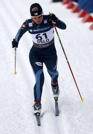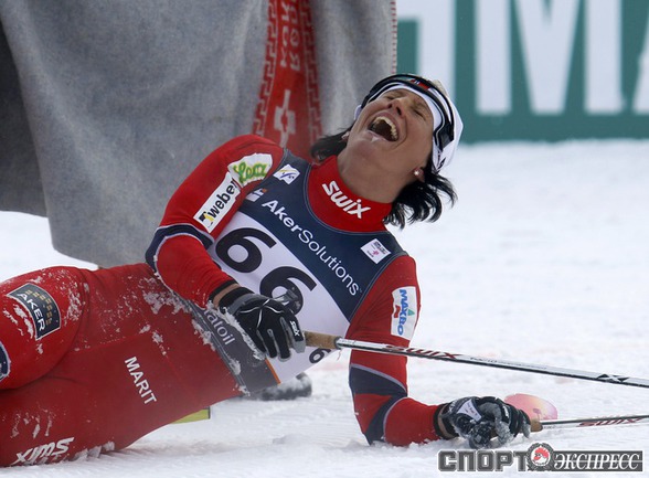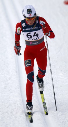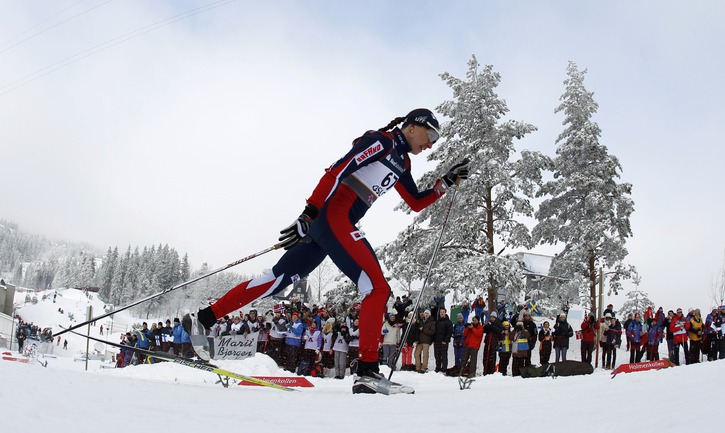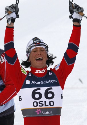 Осло. Чемпионат мира. Женщины. Индивидуальная гонка, 10 км (К). 1. Бьорген (Норвегия) - 27.39,3. Эта золотая медаль чемпионата мира-2011 стала для Марит Бьорген третьей подряд. Ранее норвежка выиграла все состоявшиеся к тому моменту в Холменколлене виды программы - спринт и дуатлон. Фото REUTERS