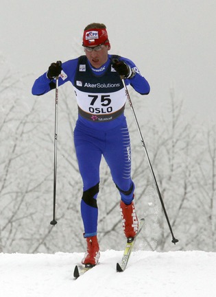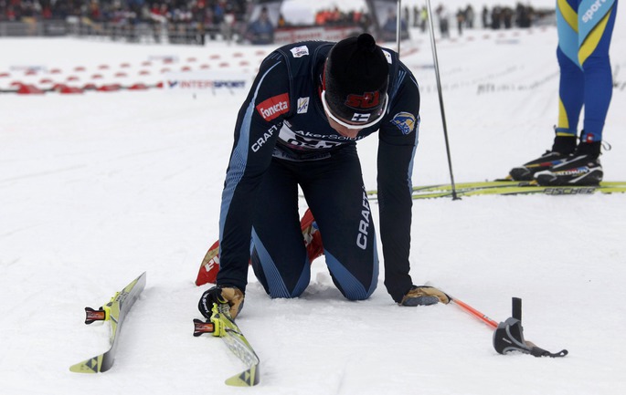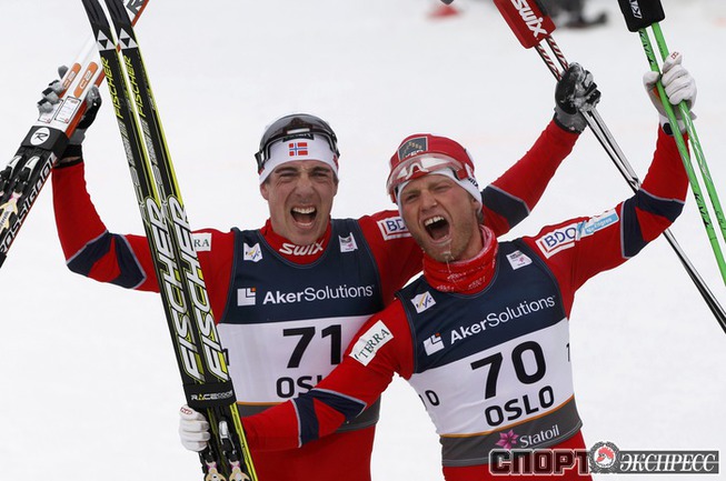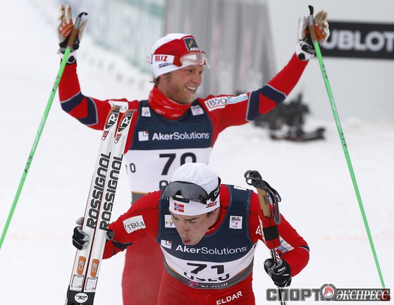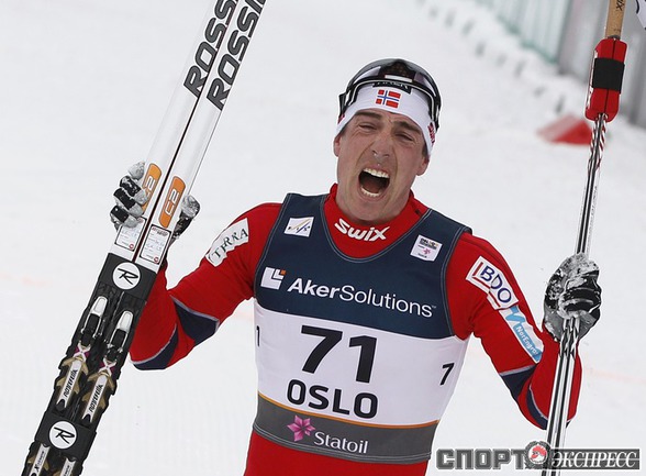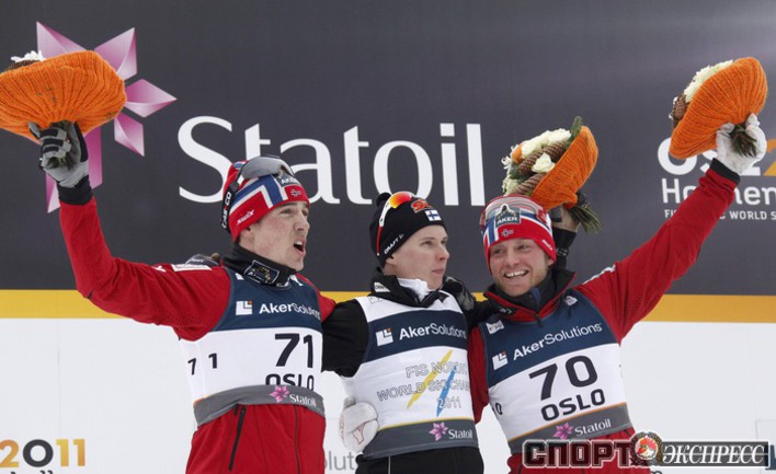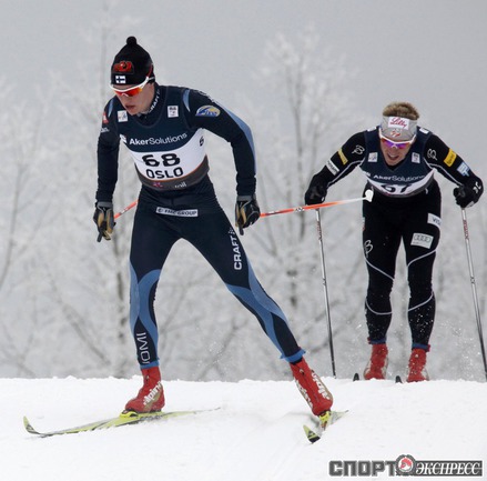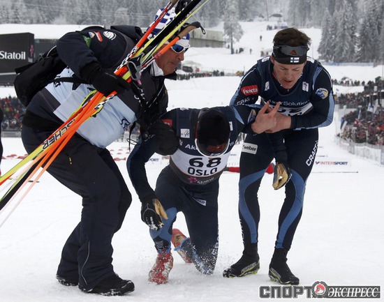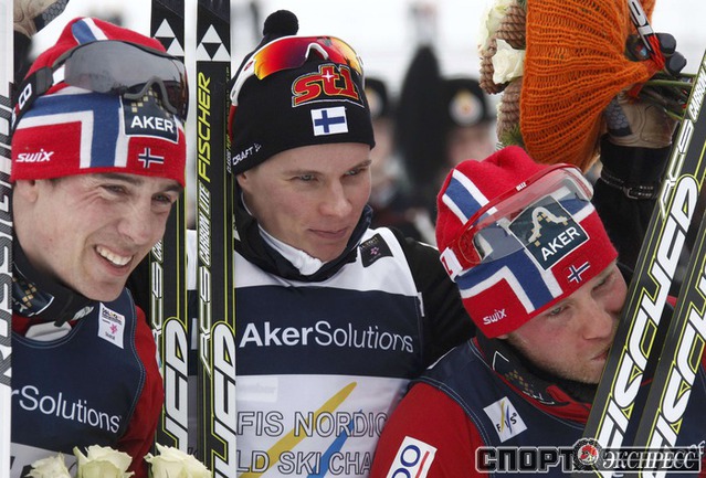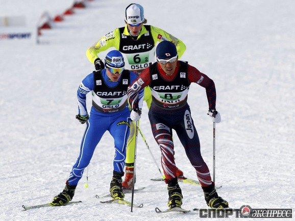 Лыжные гонки. Холменколлен. Мужчины. Чемпионат мира. Мужчины. Индивидуальная гонка, 15 км. Классический стиль. 1. Хейккинен (Финляндия) - 38.14,7; 2. Реннинг (Норвегия) - отставание 13,3; 3. Йонсруд-Суннбю (Норвегия) - 31,9; 4. ВОЛЖЕНЦЕВ - 36,6, Фото REUTERS