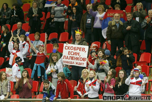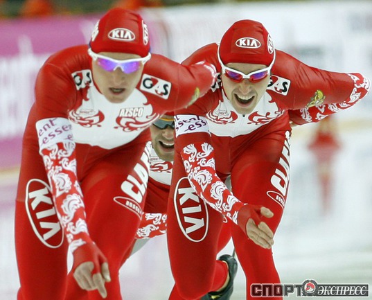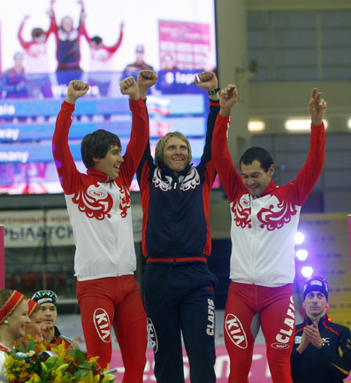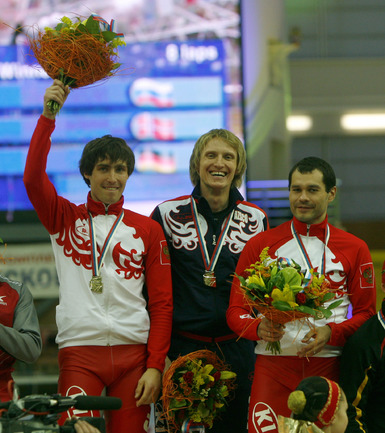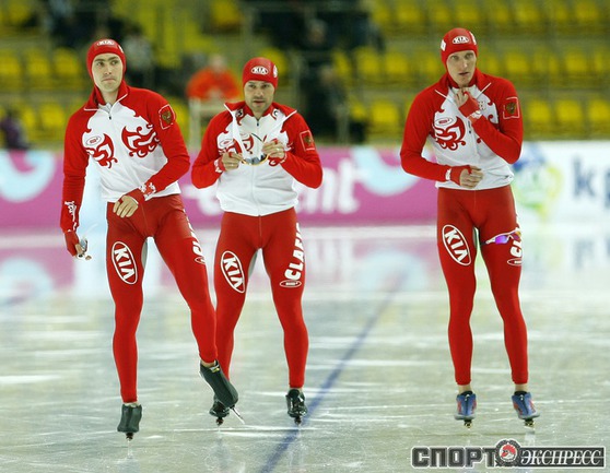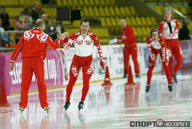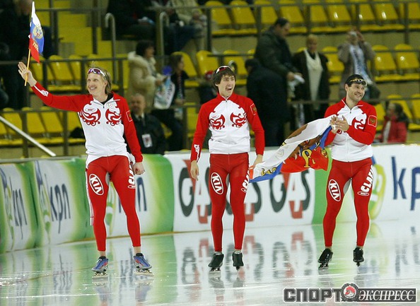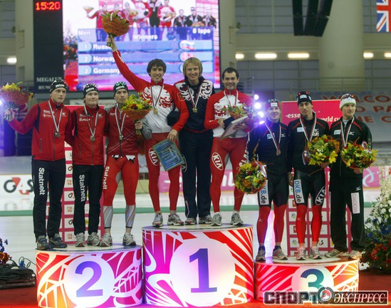 Москва. Кубок мира. 6-й этап. Мужчины. Российская команда в составе Ивана Скобрева, Павла Байнова и Александра Румянцева завоевала первое место. Фото - Татьяна ДОРОГУТИНА, "СЭ"
