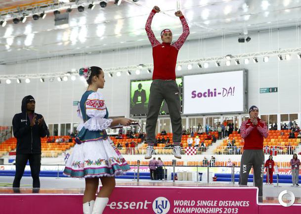 Коньки. Сочи. Чемпионат мира на отдельных дистанциях. Мужчины. 1. ЮСКОВ (Россия) – 1.46,32. 2. Дэвис (США) – 1.46,83. 3. СКОБРЕВ (Россия) – 1.46,97. 4. Хэнсен (США) – 1.47,40. 5. Лунне Педерсен (Норвегия) – 1.47,44. 6. Бродка (Польша) – 1.47,46. 12. ЛАЛЕНКОВ (Россия) – 1.48,33. Фото REUTERS