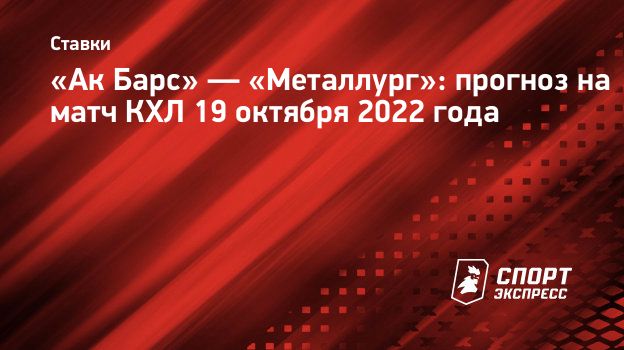 Прогноз и ставка на матч «Ак Барс» — «Металлург» 19 октября 2022 года