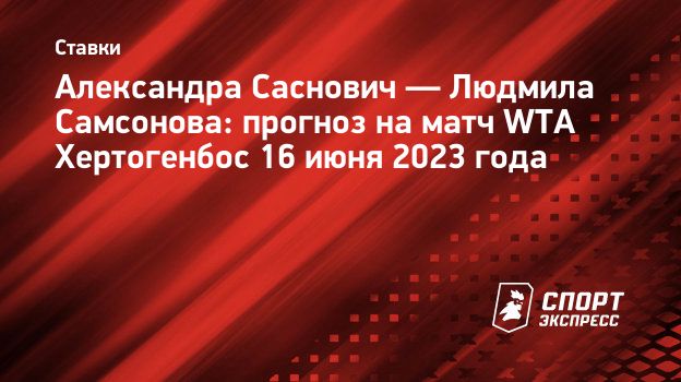 Саснович провалила грунтовый сезон, ни на одном турнире не выиграв больше матча. А в Хертогенбосе взяла уже два, но при этом уже во втором круге намучилась с более-менее приличной соперницей — Грэт Миннен из Бельгии даже взяла сет. Думается, со значительно превосходящей Александру в скорости и мощи ударов Самсоновой ей придется совсем тяжко.