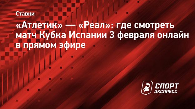 3 февраля в 1/4 финала Кубка Испании «Атлетик» примет мадридский «Реал». Матч состоится в Бильбао на стадионе «Сан-Мамес», начало — в 23.30. Прямую трансляцию можно будет посмотреть на онлайн-платформе Megogo. Эфир стартует в 23.25.