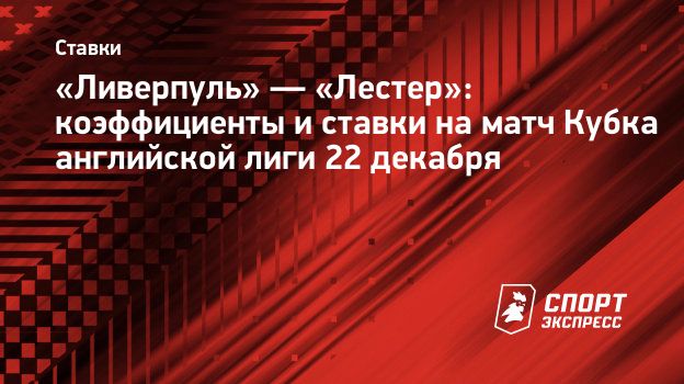 «Ливерпуль» — «Лестер»: коэффициенты и ставки на матч Кубка английской лиги 22 декабря