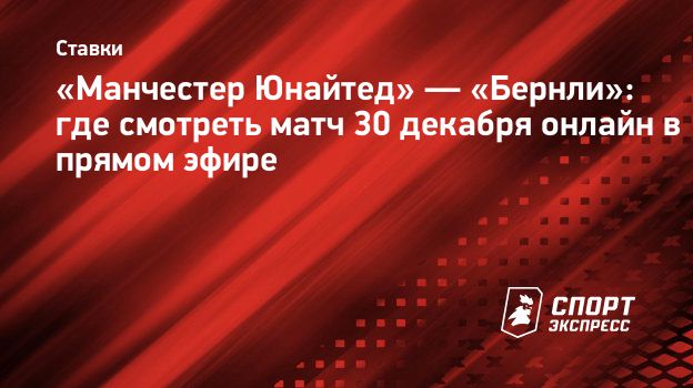 30 декабря «Манчестер Юнайтед» примет «Бернли» в 20-м туре АПЛ. Матч состоится на стадионе «Олд Траффорд». Начало — в 23.15. Прямую трансляцию покажет онлайн-площадка Okko. Эфир стартует в 22.45.