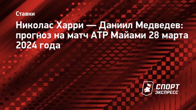 28 марта российский теннисист Даниил Медведев попробует пробиться в полуфинал турнира ATP 1000 в Майами. Его соперником в 1/4 станет чилиец Николас Харри. Игра начнется не ранее 3.00 по московскому времени, в России она легально показана не будет. Предыдущая и единственная встреча между игроками завершилась в пользу первой ракетки РФ.