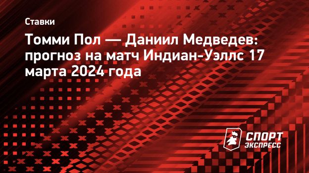 17 марта в американском Индиан-Уэллсе состоятся полуфинальные матчи в мужском одиночном разряде. В одном из них первая ракетка России Даниил Медведев сыграет с американцем Томми Полом. Игра начнется примерно в 0.50 по московскому времени, в прямом эфире в РФ она показана не будет. Счет личного противостояния — 2:0 в пользу Медведева.