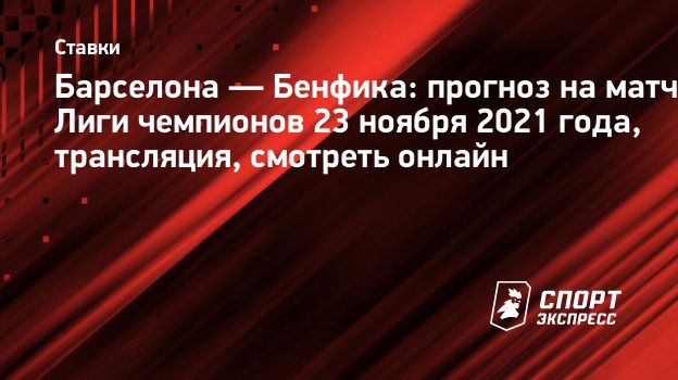 23 ноября 2021 года состоятся матчи 5-го тура Лиги чемпионов. В группе E сыграют «Барселона» и «Бенфика». Встреча пройдет на «Камп Ноу» в Барселоне и начнется в 23.00. Трансляцию покажет один телеканал — «Матч Футбол 2». «Спорт-Экспресс» подготовил прогноз на эту игру. Время выбрать правильную ставку.