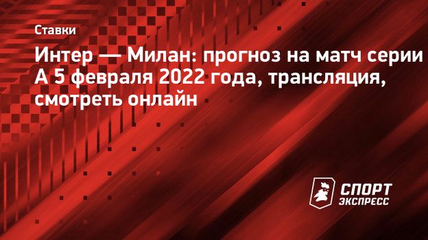 5 февраля в 24-м туре серии А «Интер» сыграет в дерби с «Миланом». Встреча пройдет на стадионе «Сан-Сиро» и начнется в 22.00. Трансляцию покажет сайт matchtv.ru. «Спорт-Экспресс» подготовил для вас прогноз на эту встречу и предлагает сделать ставку.