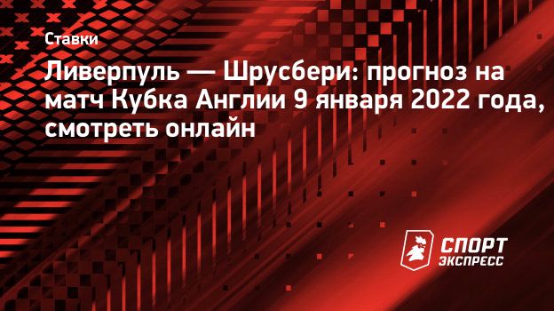 9 января «Ливерпуль» примет «Шрусбери» в 3-м раунде Кубка Англии. Матч пройдет на стадионе «Энфилд», начало в 17.00. Прямую трансляцию встречи покажет телеканал «Матч Футбол 3».