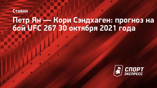 30 октября Петр Ян проведет бой с Кори Сэндхагеном за звание временного чемпиона UFC в легчайшем весе. Встреча пройдет в Абу-Даби на турнире UFC 267. Начало — в 20.00.