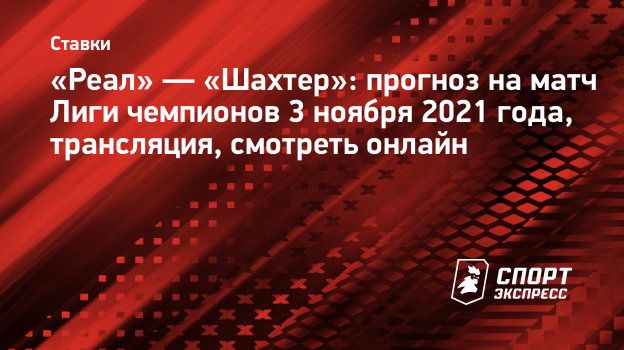 3 ноября 2021 года состоятся матчи 4-го тура Лиги чемпионов. В группе D сыграют «Реал» и «Шахтер». Встреча пройдет на «Сантьяго Бернабеу» в Мадриде и начнется в 20.45. Трансляцию покажет «Матч ТВ». «Спорт-Экспресс» подготовил прогноз на эту игру. Время выбрать правильную ставку.