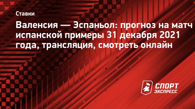 31 декабря в 19-м туре чемпионата Испании «Валенсия» сыграет с «Эспаньолом». Встреча пройдет в Валенсии на стадионе «Месталья» и начнется в 18.15. Трансляцию покажет сервис Okko. «Спорт-Экспресс» подготовил для вас прогноз на эту игру и предлагает сделать ставку.